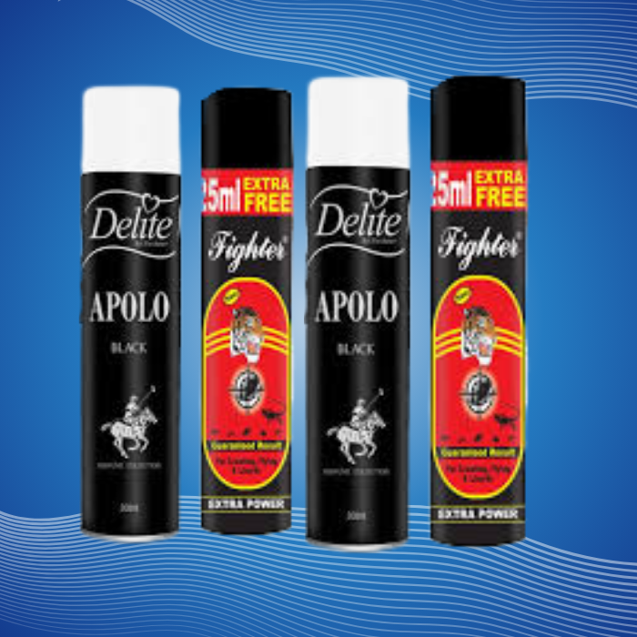 Bundle Offer – 2 Fighter Insect Killer Sprays (325ml each) + 2 Delite Air Fresheners Apolo Black (300ml each)